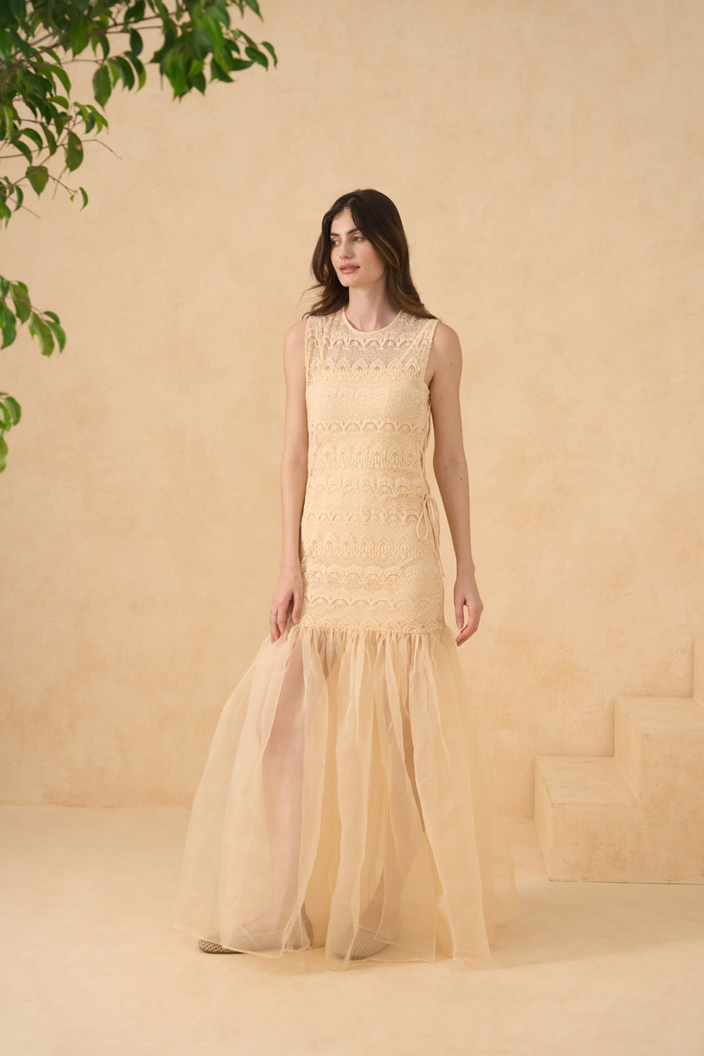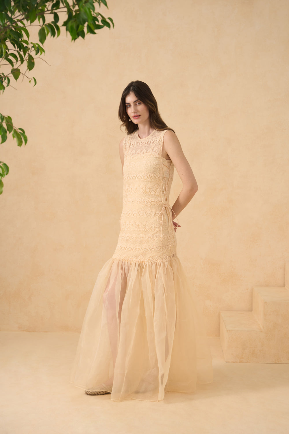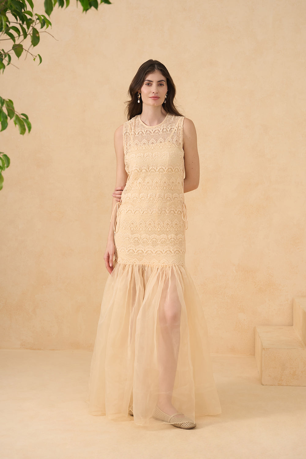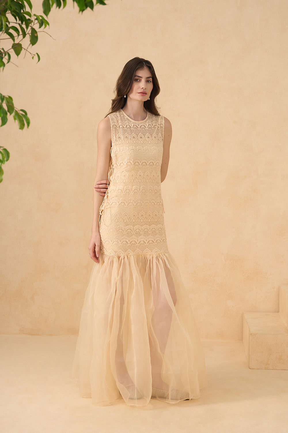 Soft blush tones and gathered detailing make this a go-to for gentle glamour. A sunlit ode to softness, the Amber Drift Dress flows with every step. Made from lightweight cotton-crochet with a side tie detail and adjustable bodice, it’s designed to flatter and breathe — whether you're oceanside or city-bound.