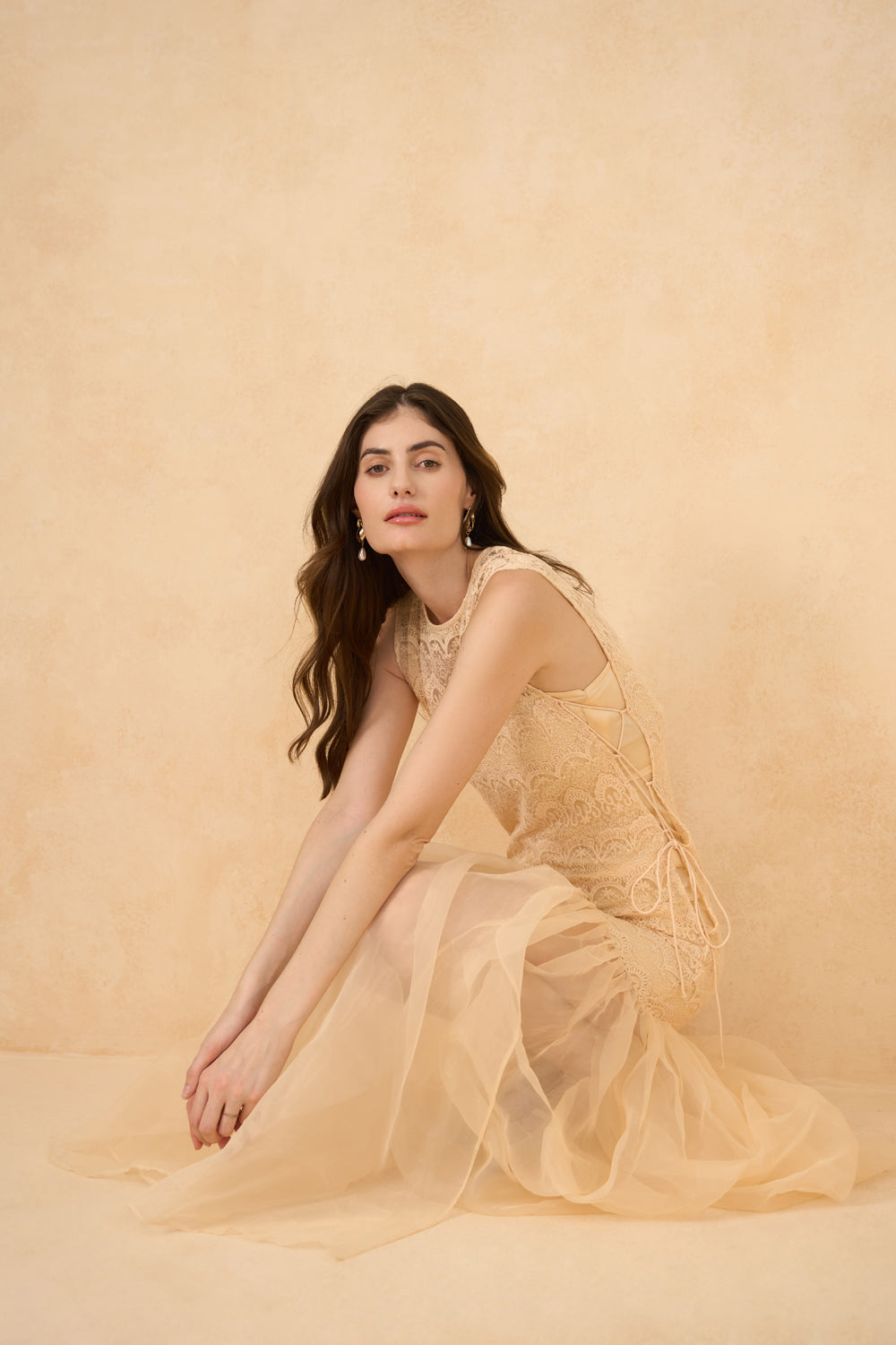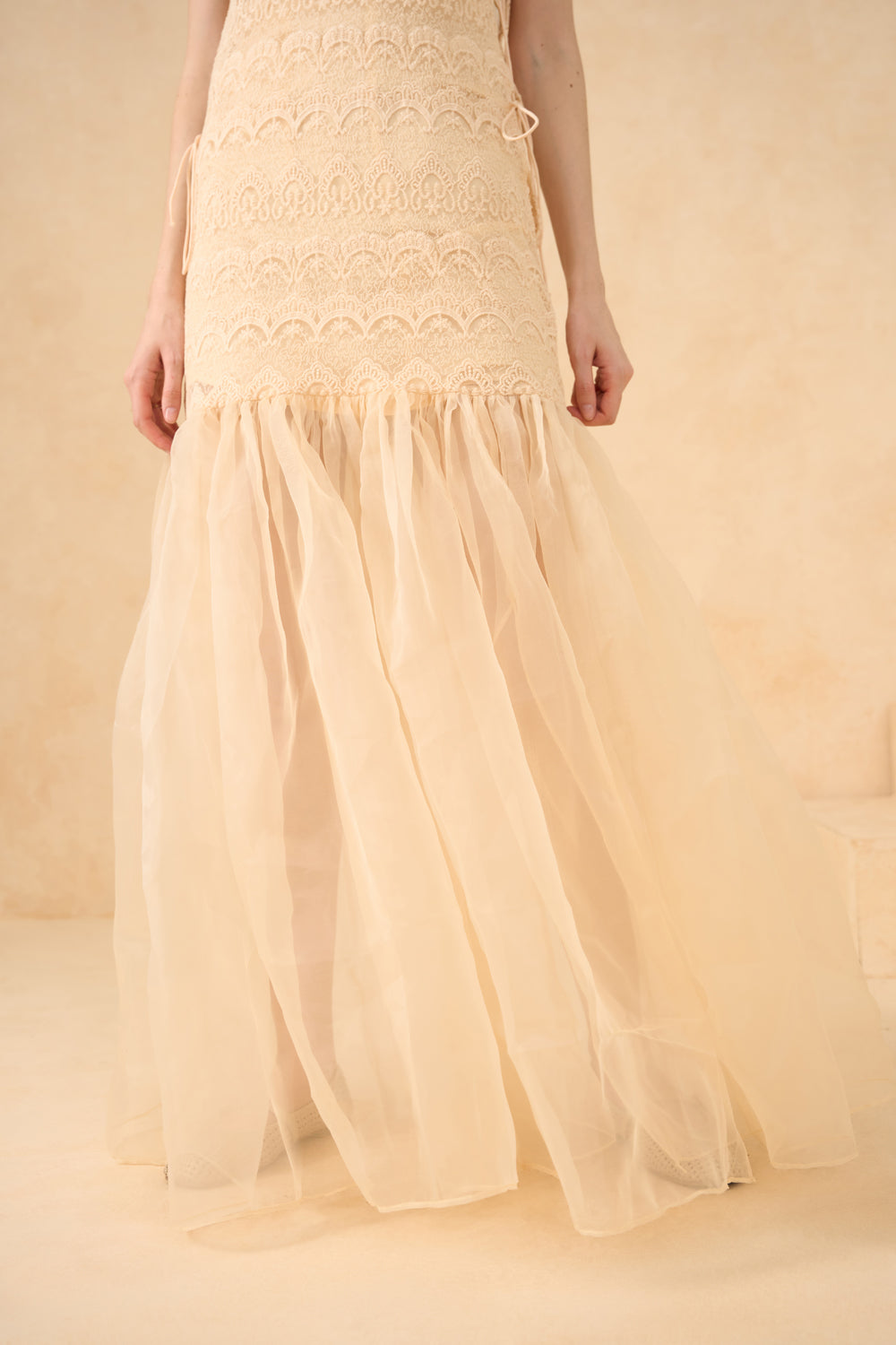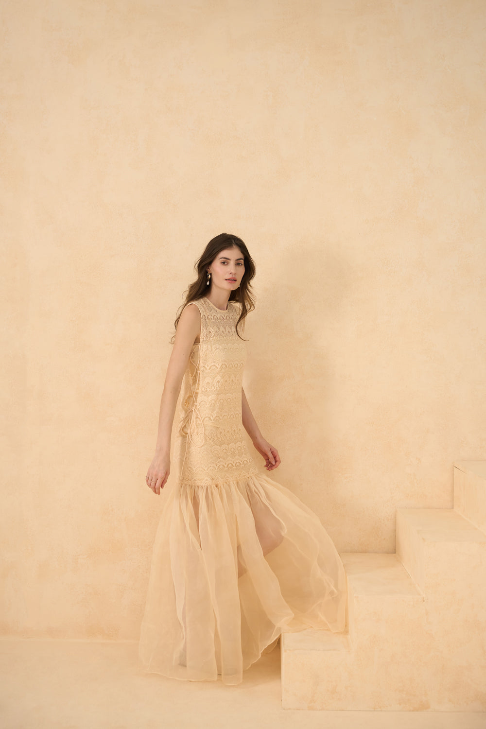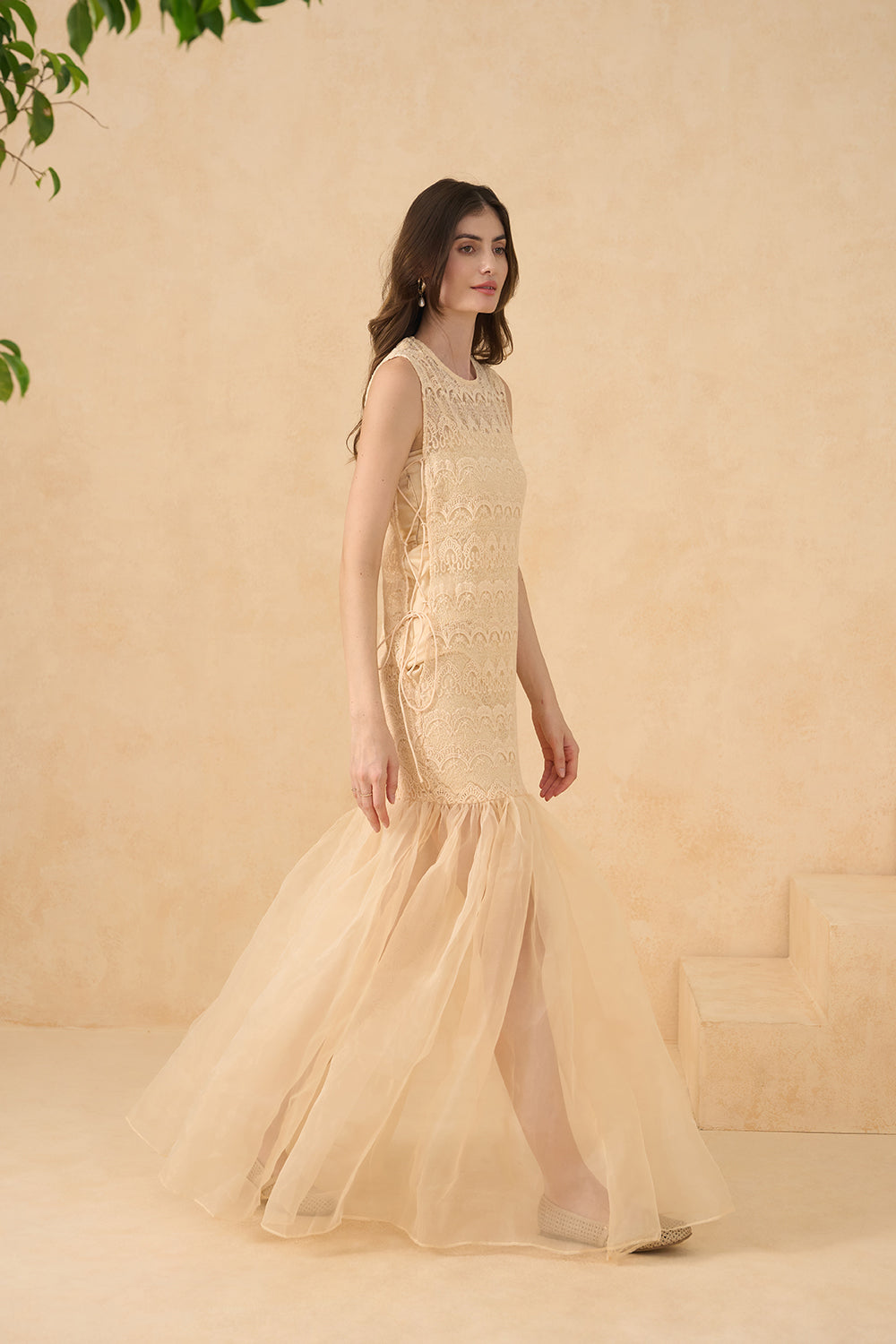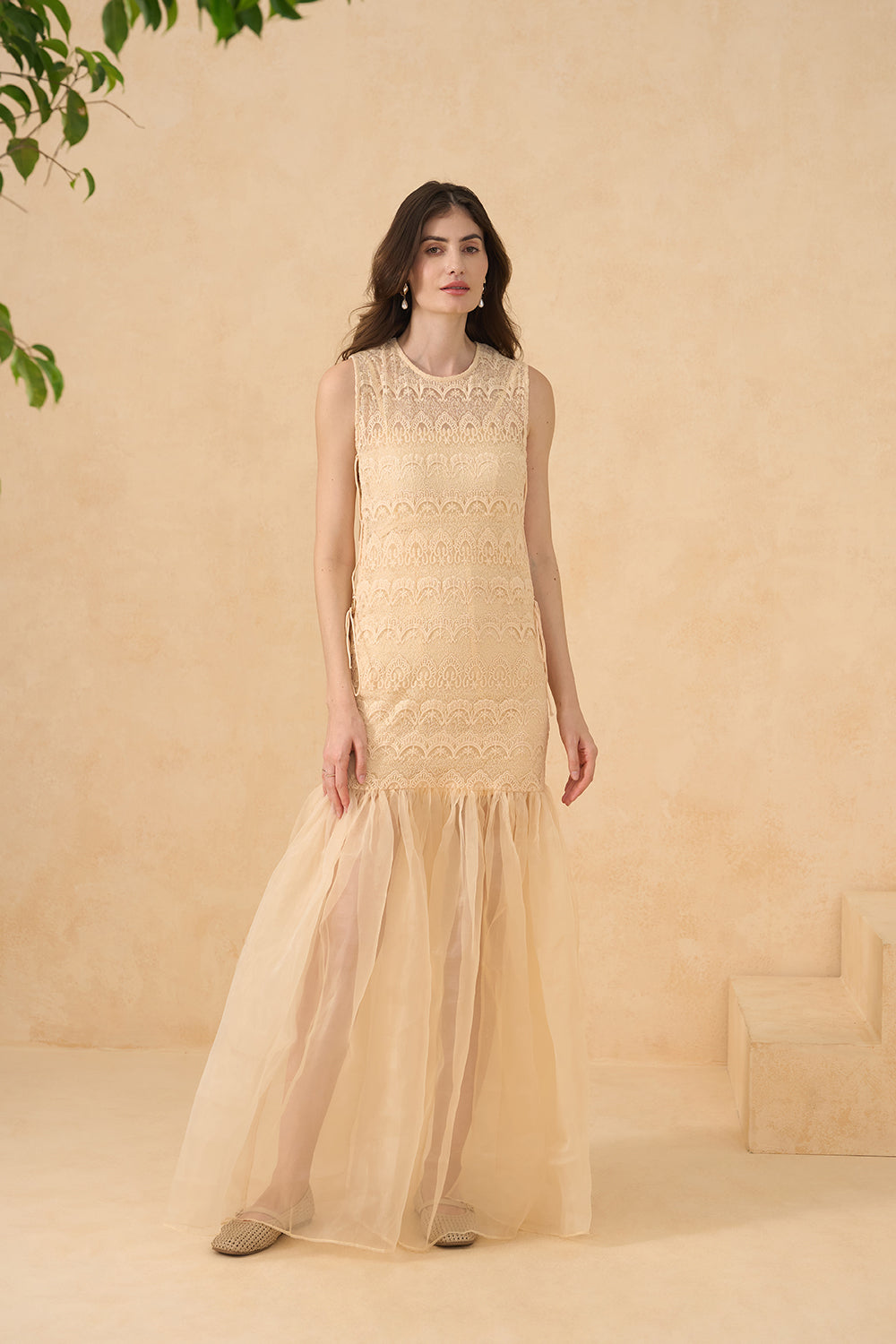 Soft blush tones and gathered detailing make this a go-to for gentle glamour. A sunlit ode to softness, the Amber Drift Dress flows with every step. Made from lightweight cotton-crochet with a side tie detail and adjustable bodice, it’s designed to flatter and breathe — whether you're oceanside or city-bound.