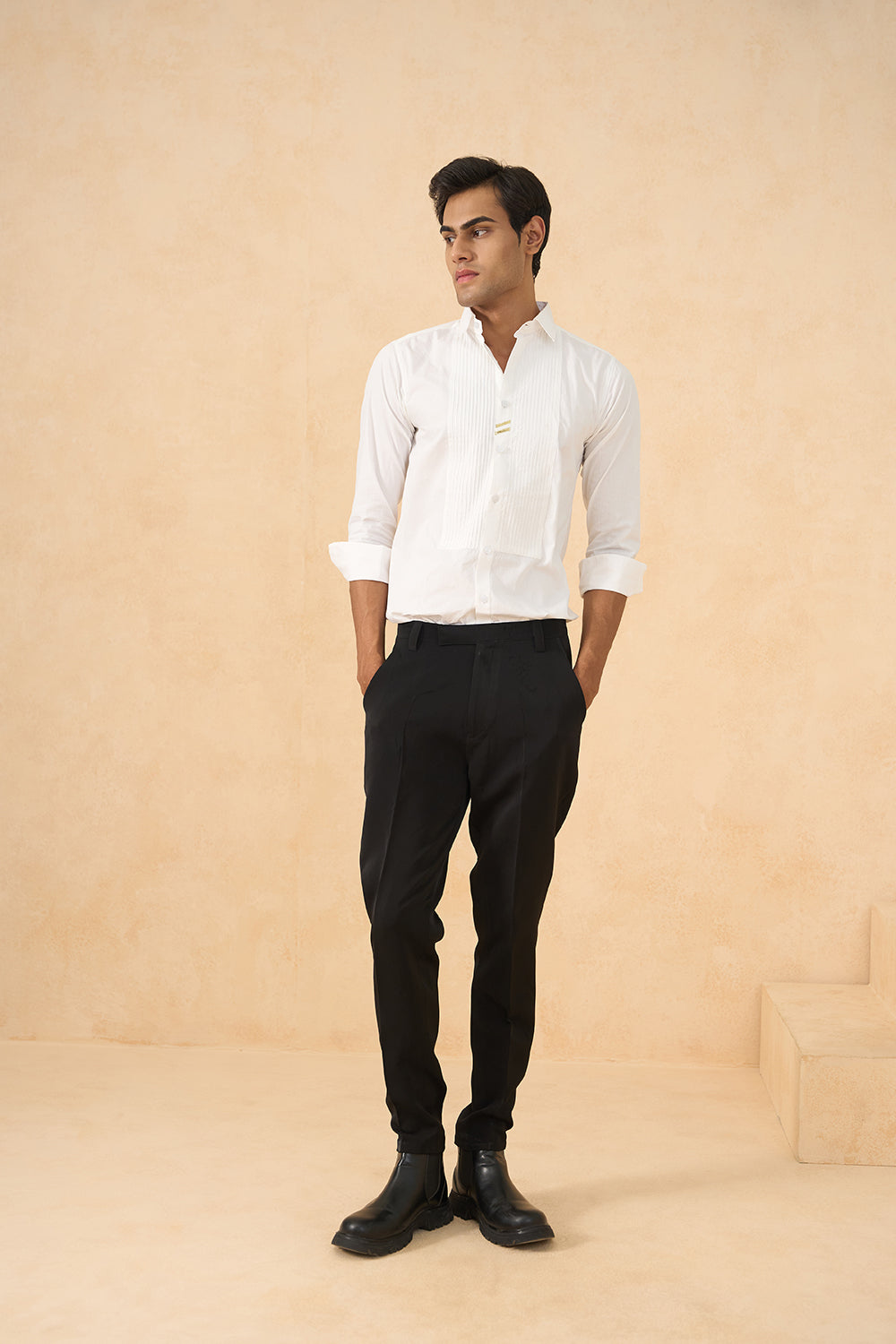 Where structure meets sophistication, Aurelian trousers are cut for effortless movement and tailored elegance. Crafted from a premium crepe with a soft, breathable drape, they feature a clean waistband, fluid straight leg, and subtle front pleats for a refined silhouette. Designed for quiet luxury while looking polished.