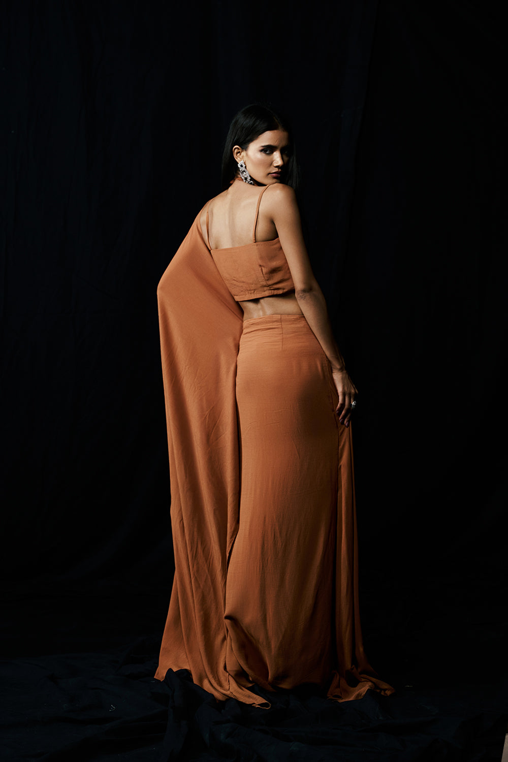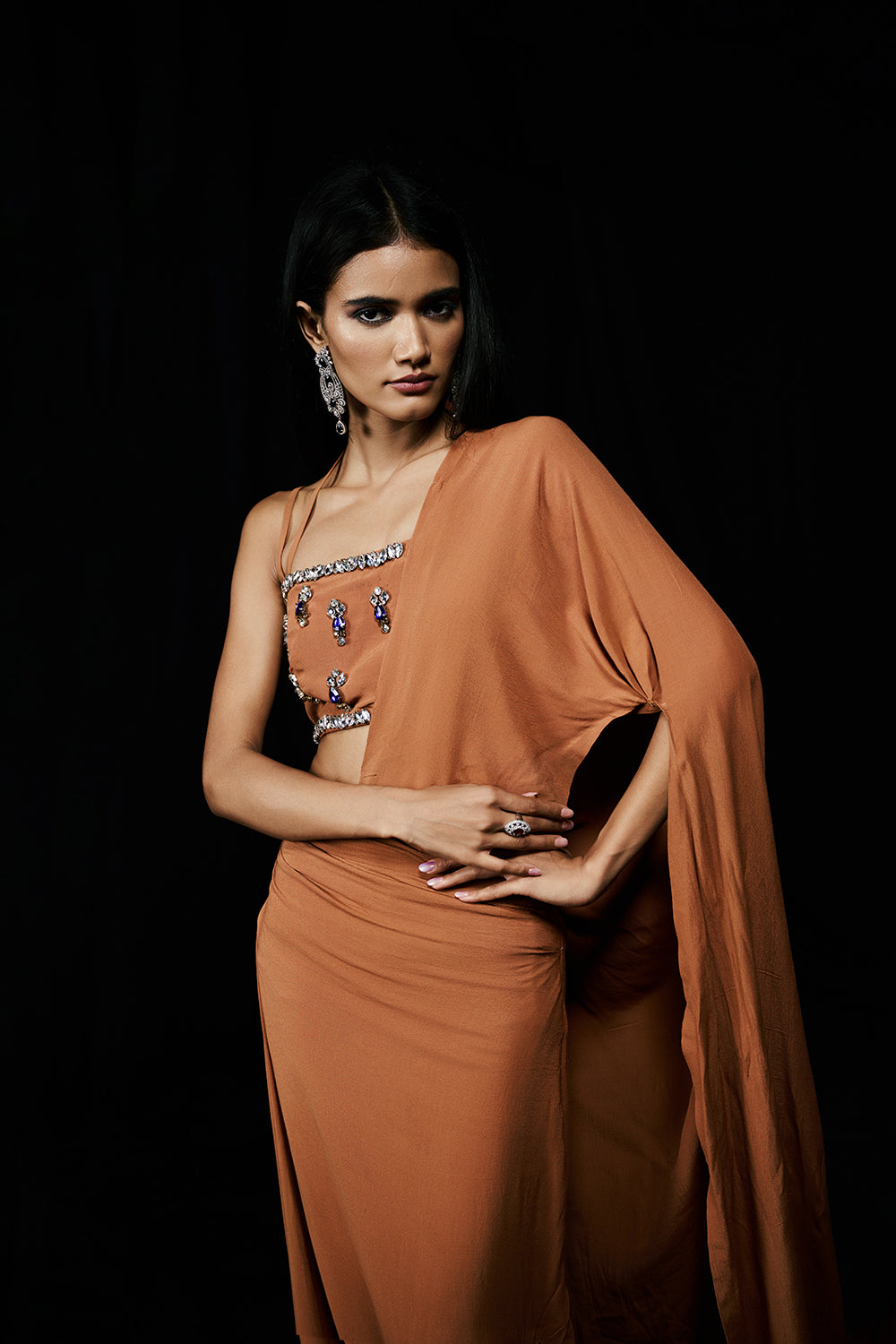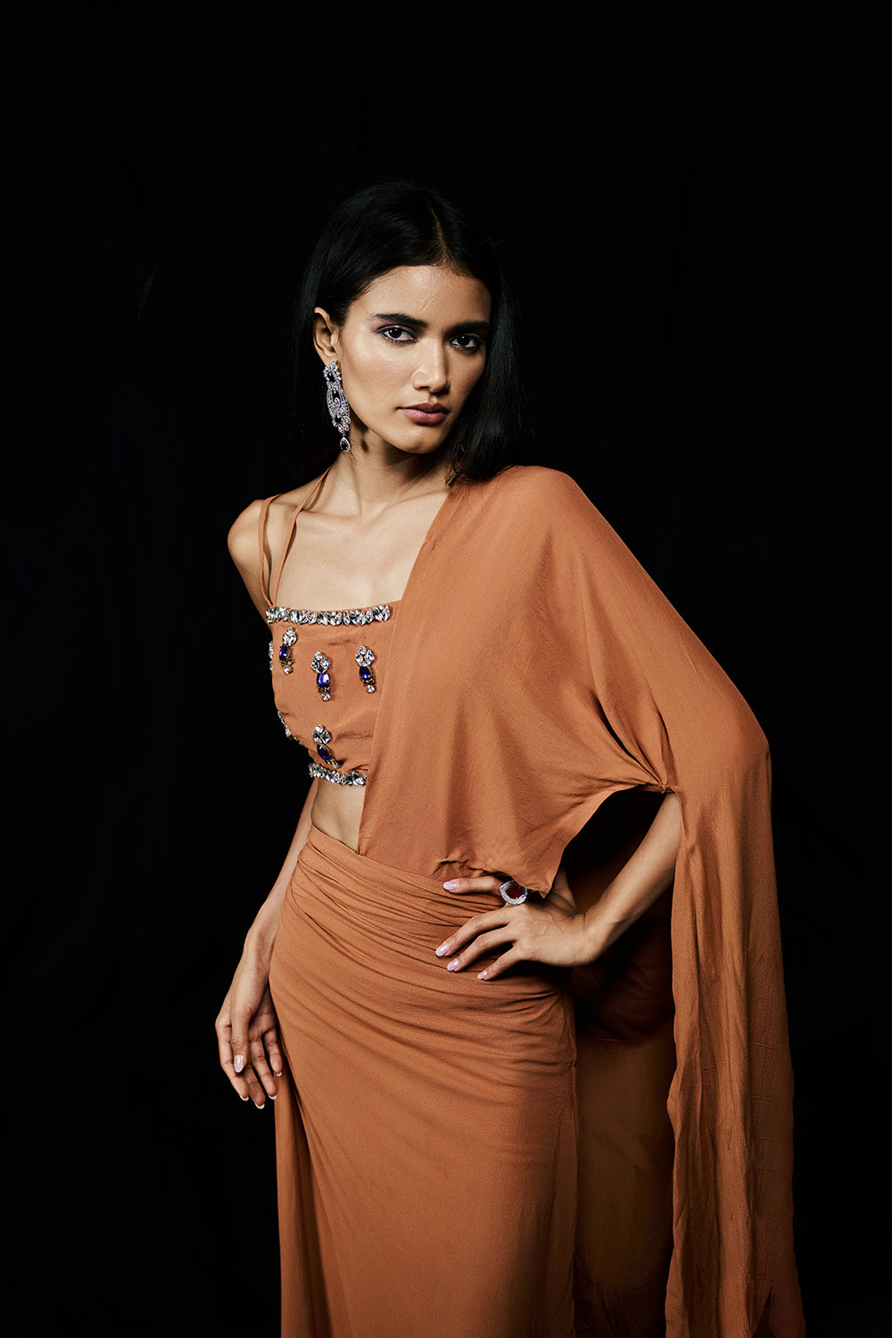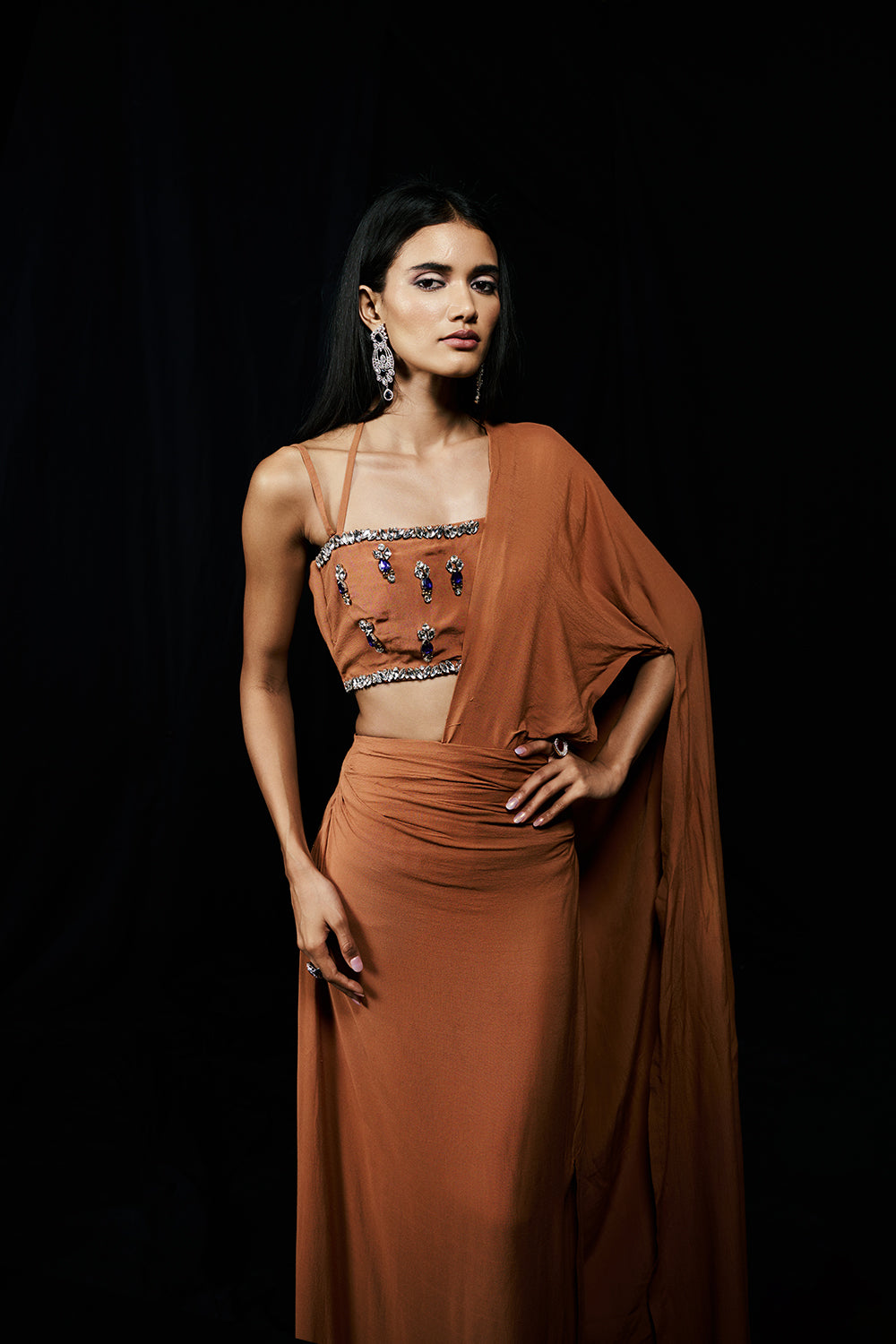 In midnight tones and plush textures, Clay Serenade Drape is crafted for the woman who thrives in the after-hours. Luxurious velvet meets liquid satin draping, held together with an accent chain that doesn’t confine—it liberates. Dark, opulent, and magnetic.