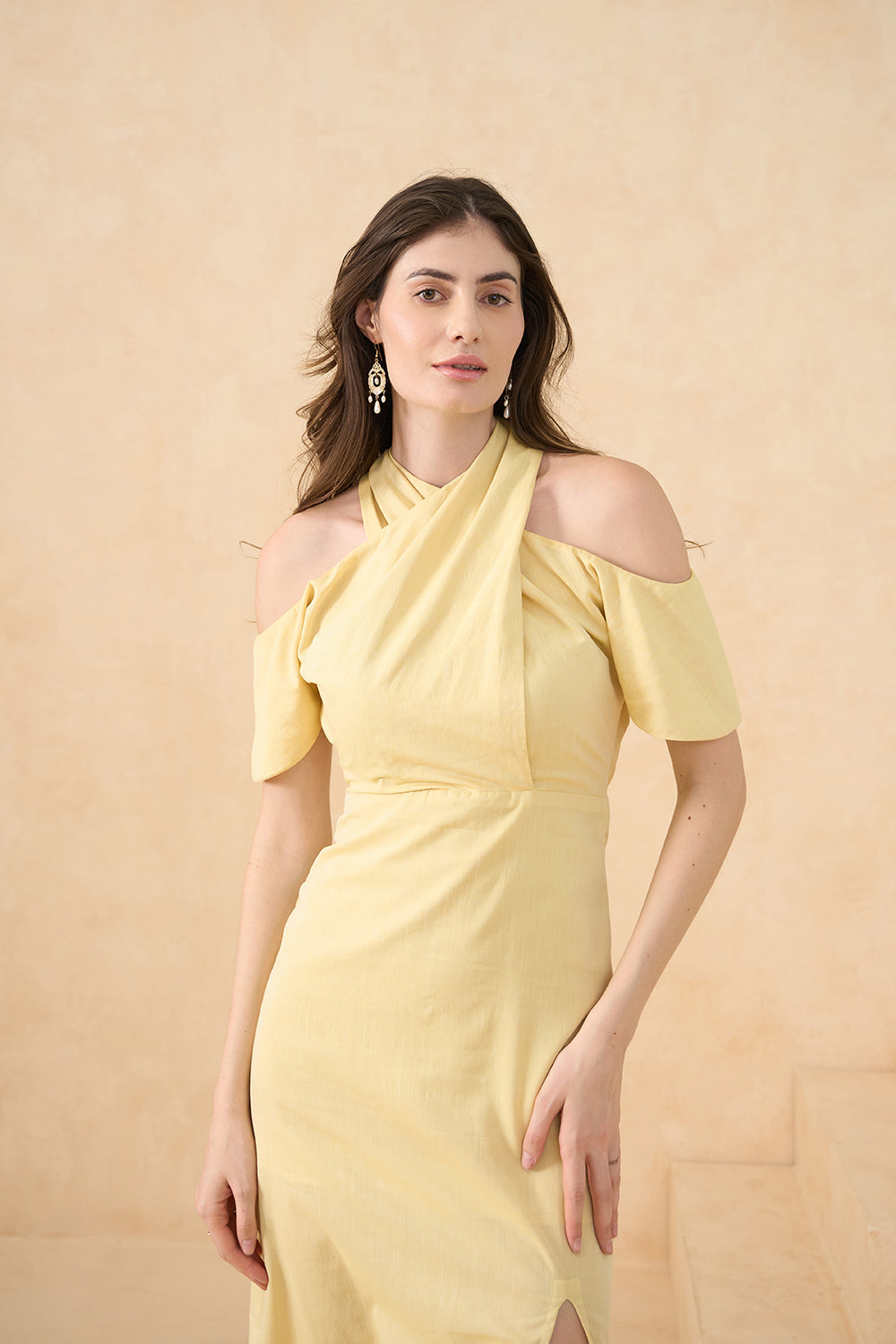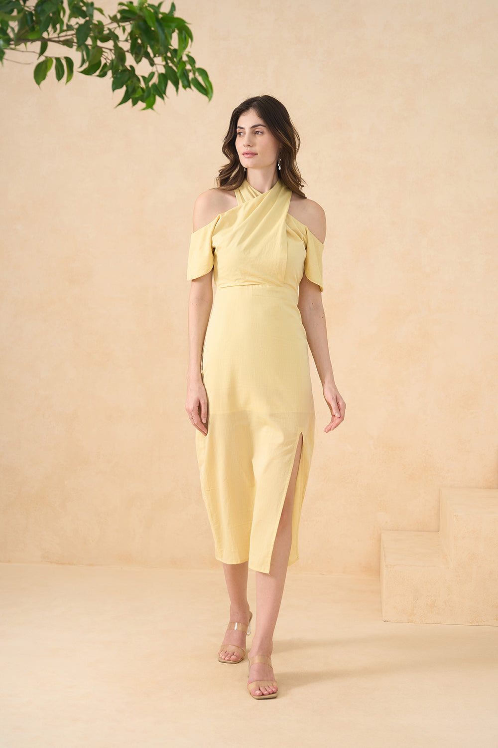 A wrap-effect cotton dress that feels like liquid gold on your skin.