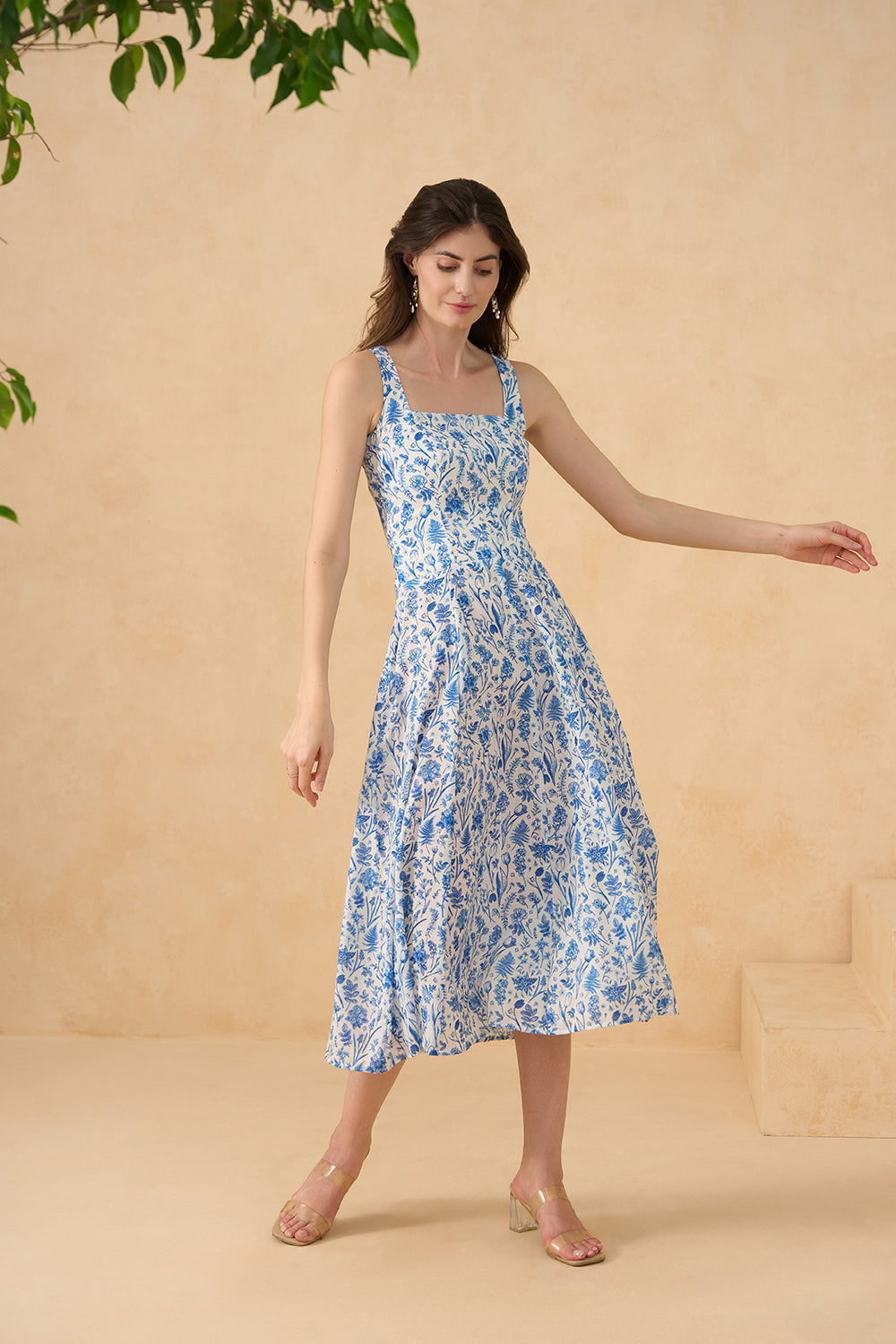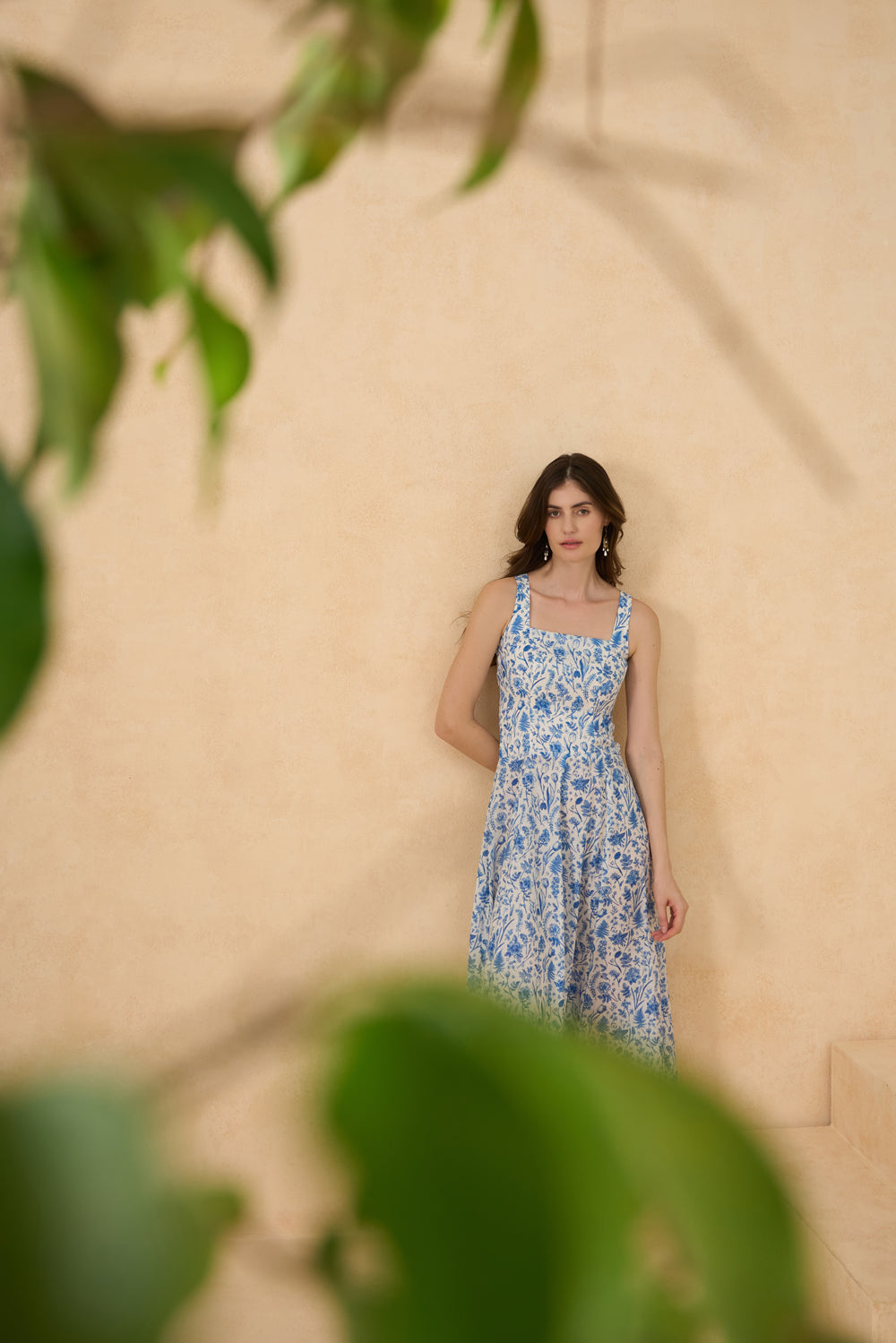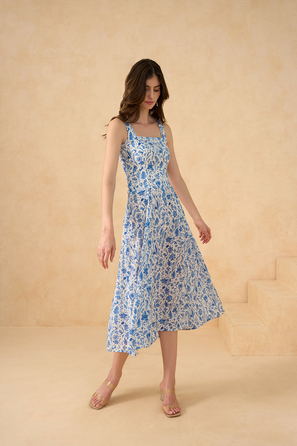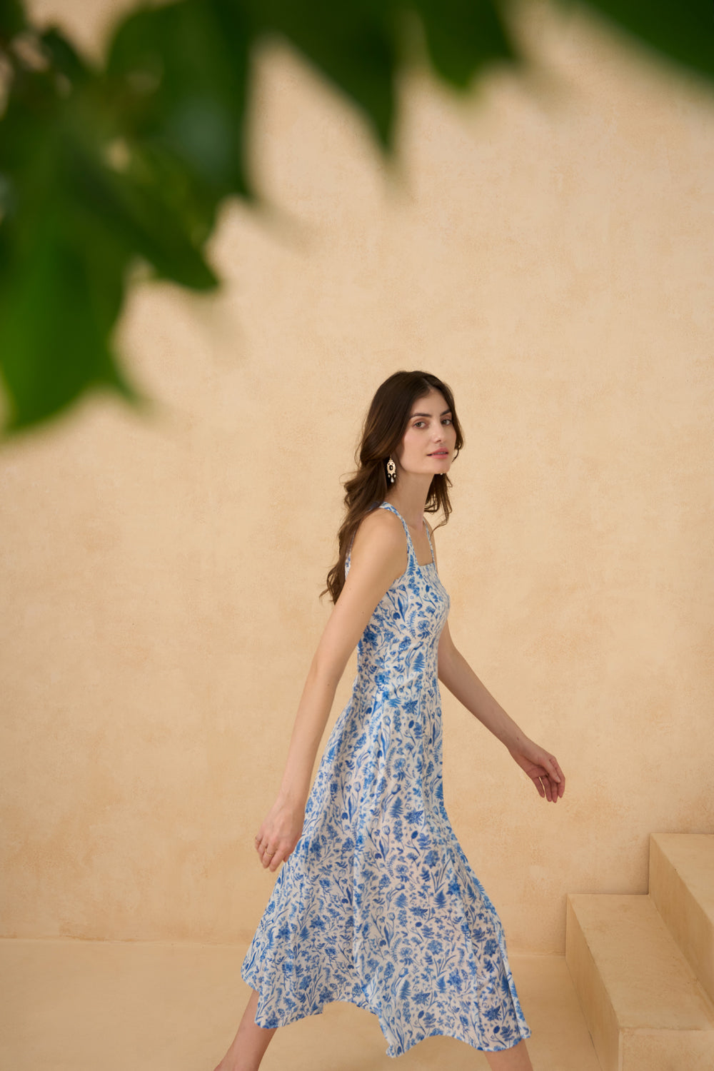 A printed maxi dress with a floral print that flows like summer air
