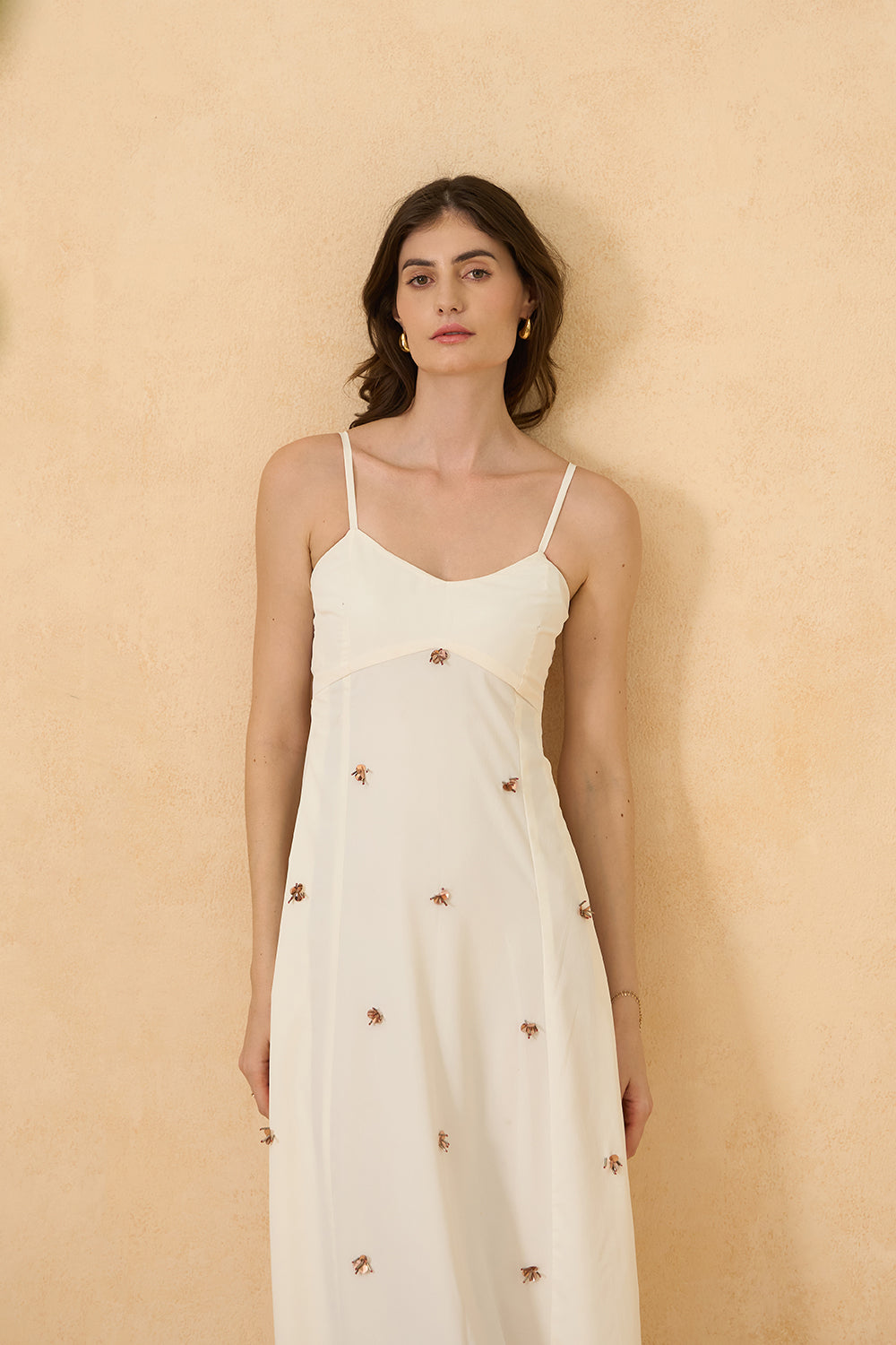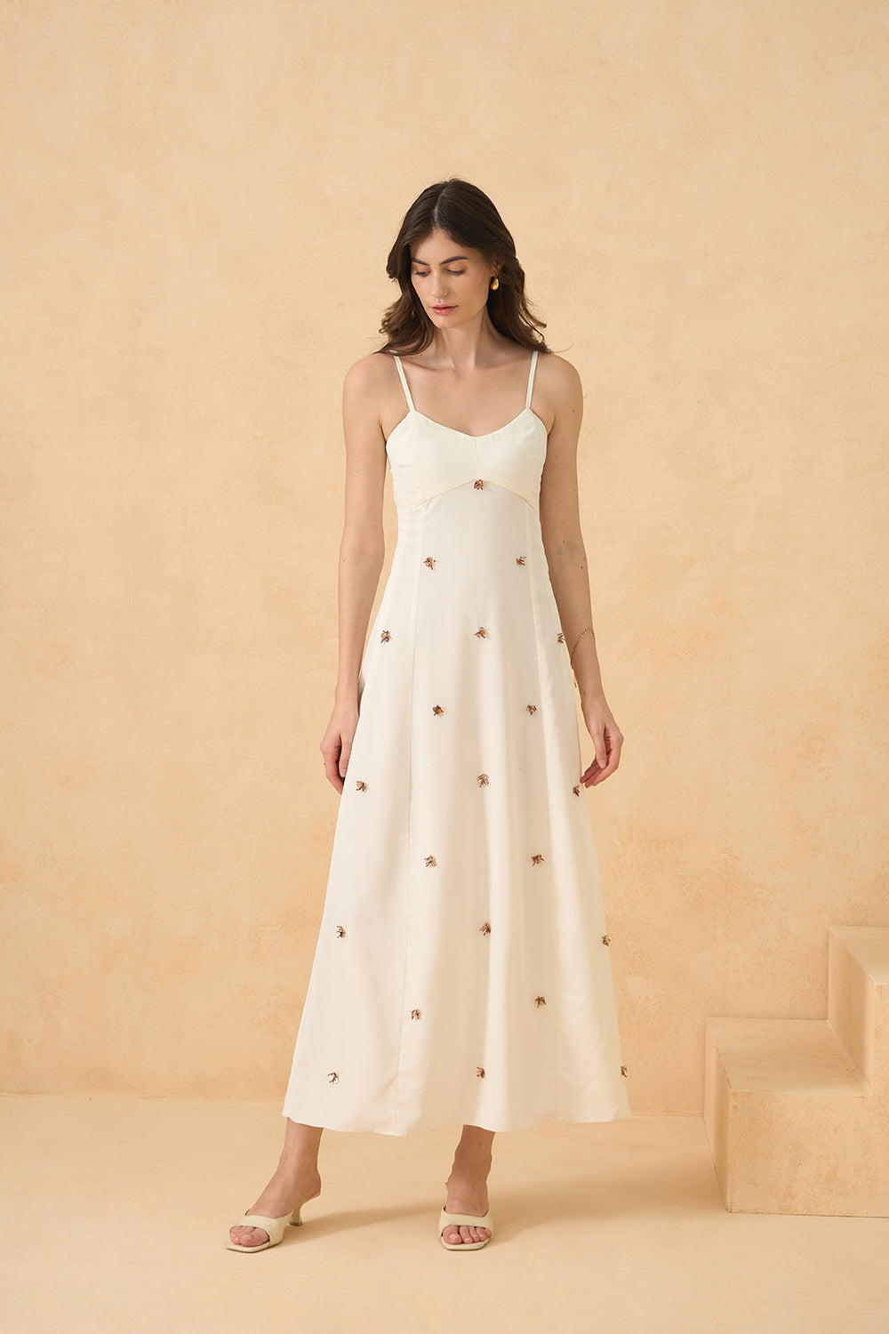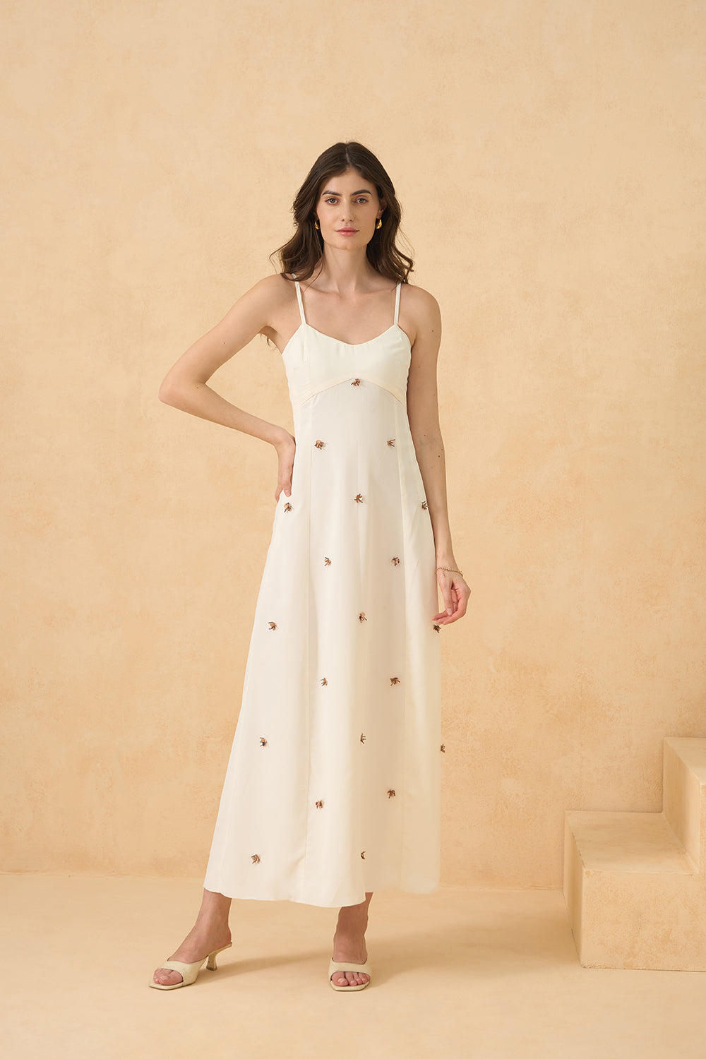 Flirty, clean, and featherlight—a minimal maxi that pairs beautifully with sun-kissed skin