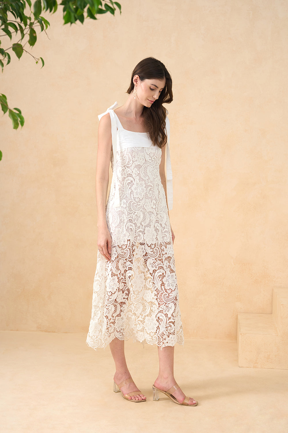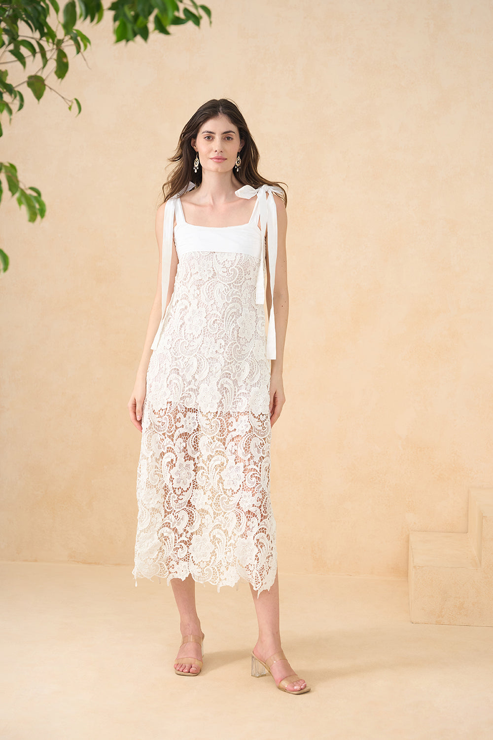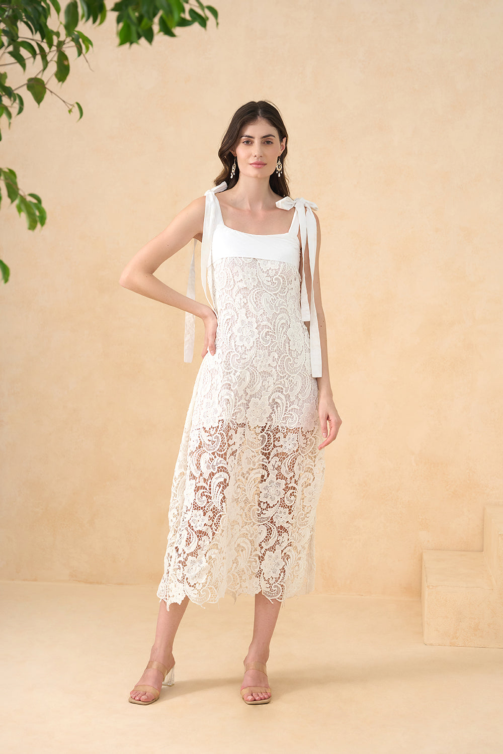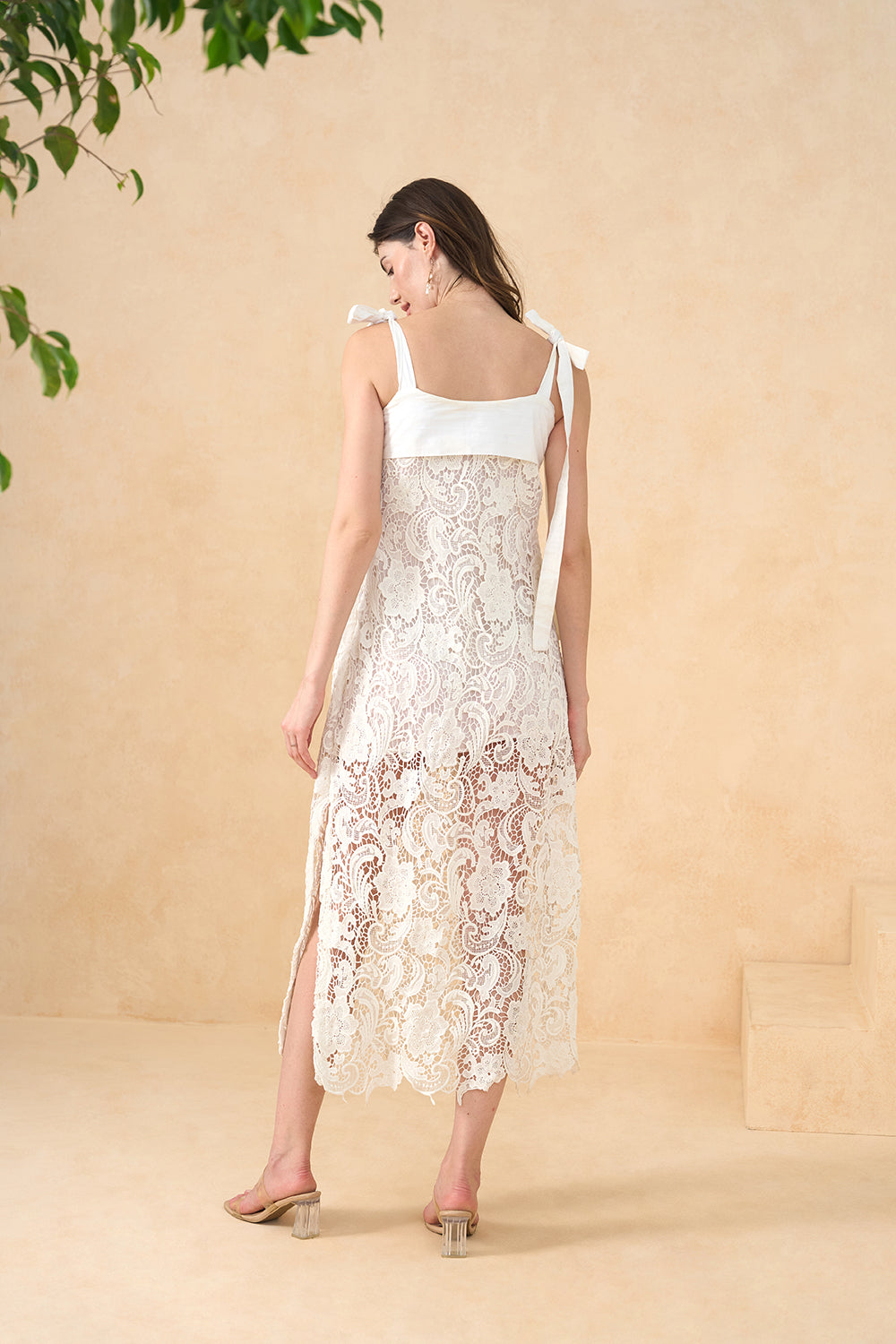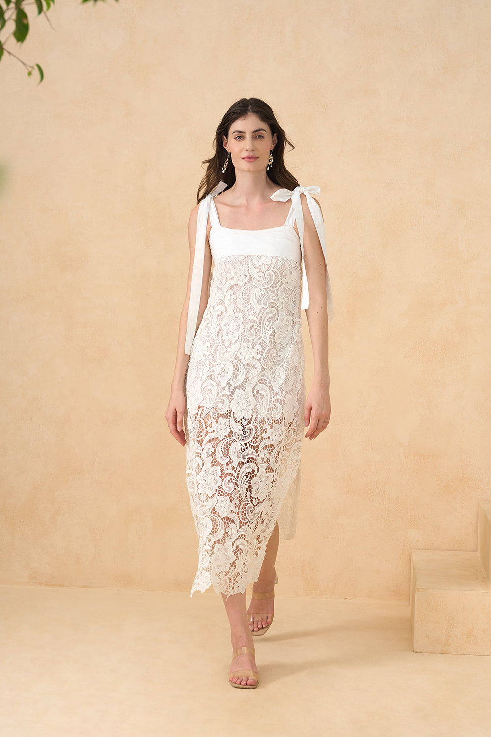 A tie-knot detail with floral charm, this piece glides with you like a dream through the day.